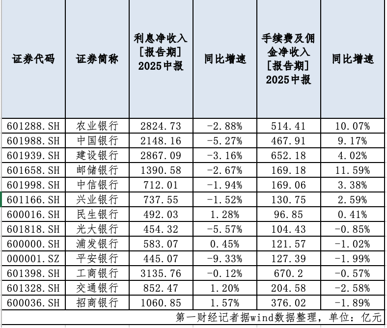 存款部分分流至理财市场后,银行的中收业务规模开始水涨船高。第一财经据Wind数据梳理,上半年,上述13家银行的手续费及佣金净收入合计为3804.53亿元,同比增长3.18%。